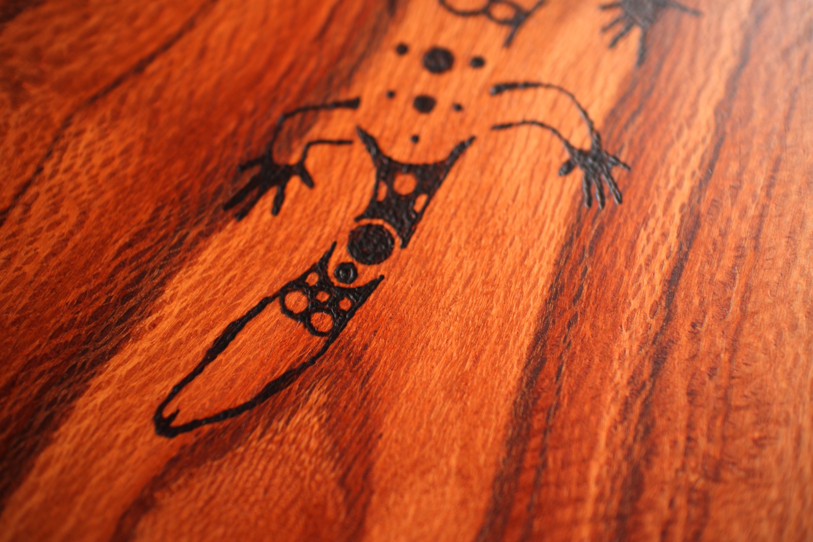 Collected sustainably from the Peel region of Western Australia, this piece has been cut and sanded to a smooth finish by hand. Boasting a minimalist depiction of Western Australian Goanna burnt into the wood on one side, it is a one of a kind creation that will make a wonderful addition to any kitchen.