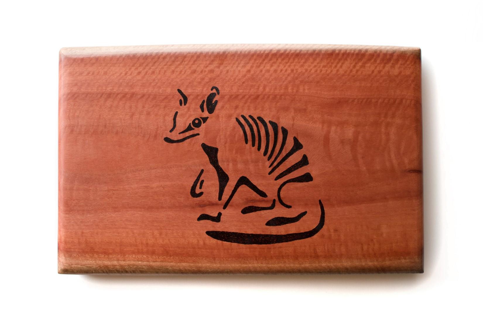 Collected sustainably from Harvey, Western Australia, this piece has been cut by hand, sanded to a smooth finish by hand, and has had a minimalist depiction of a Numbat burnt into the wood on one side. This is a one of a kind piece.